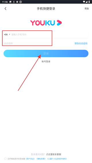 4、輸入手機(jī)號(hào)、動(dòng)態(tài)密碼,再點(diǎn)擊登錄的按鈕即可完成。