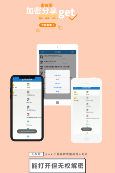 1、分享的加密文件只有密友圈的好友可閱讀,不可解密;
