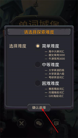 2、選擇探索難度,點(diǎn)擊確認(rèn)選擇按鈕進(jìn)入。