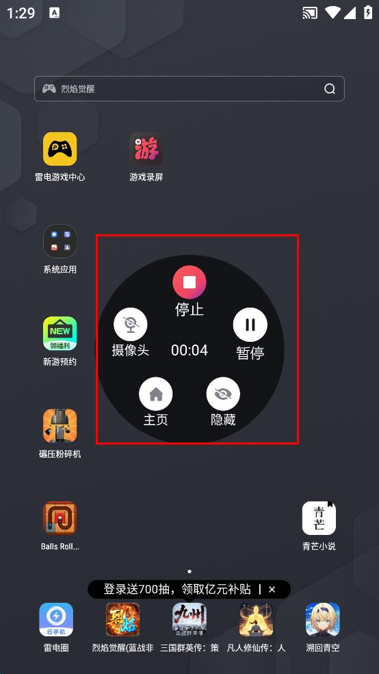 錄制完成或要暫停錄制,回到游戲錄屏主頁點暫停/停止