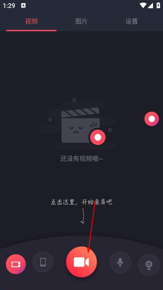 1、打開錄屏軟件,點擊底部錄屏按鈕,彈出錄屏控制界面。