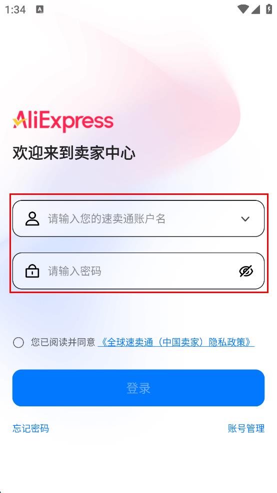 4、確認(rèn)賬戶名、密碼輸入無(wú)誤且隱私政策已勾選后,點(diǎn)擊登錄按鈕,即可完成速賣通賣家中心的登錄操作。