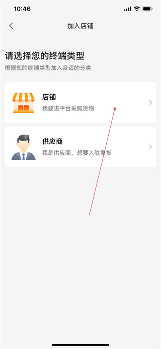3、在加入店鋪頁面選擇終端類型為店鋪,進入選擇地區(qū)頁面。