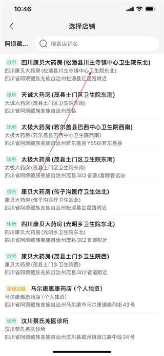 5、在選擇店鋪頁面選擇要加入的藥店,進入加入店鋪信息填寫頁面。