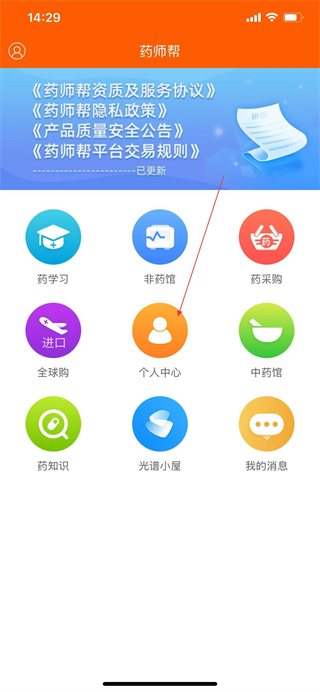 1、打開藥師幫App的首頁,點擊“個人中心”選項,進入個人中心頁面。