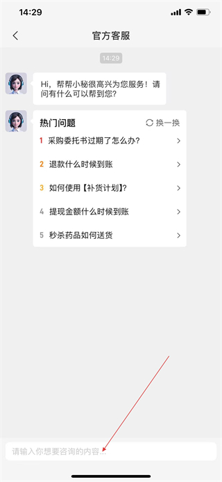 4、在客服對話頁面的輸入框中輸入咨詢內(nèi)容,即可與人工客服進行溝通。