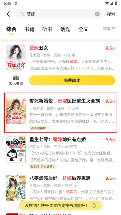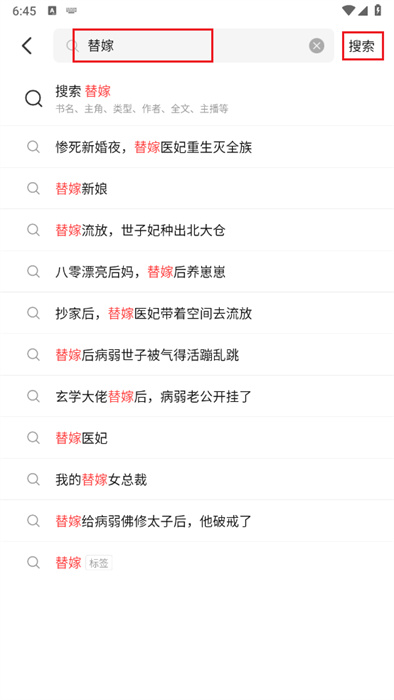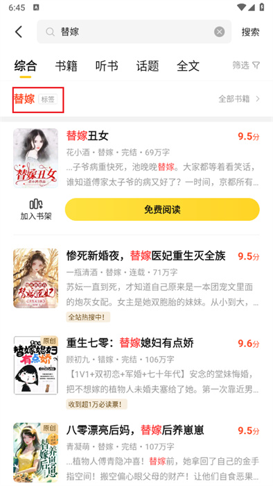 3、此時屏幕之中將會出現(xiàn)有【替嫁】標(biāo)簽的所有小說;