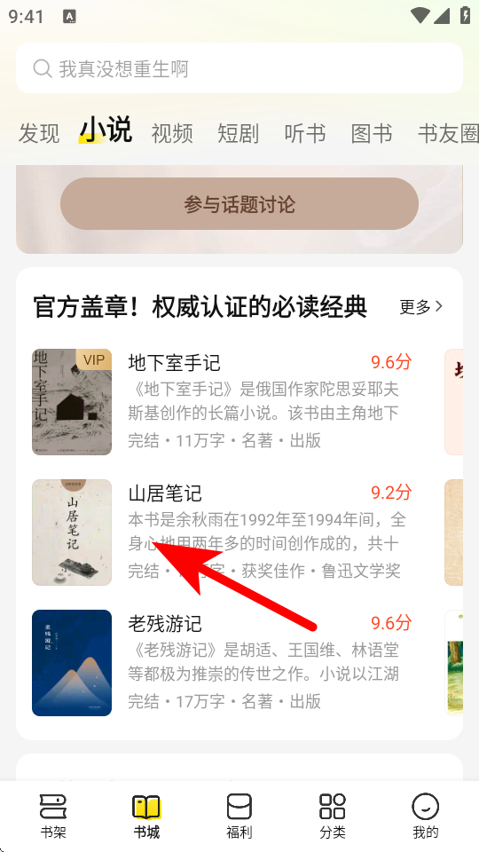 1、在七貓小說書城頁面,點擊想要下載的小說條目,進(jìn)入小說詳情頁面。