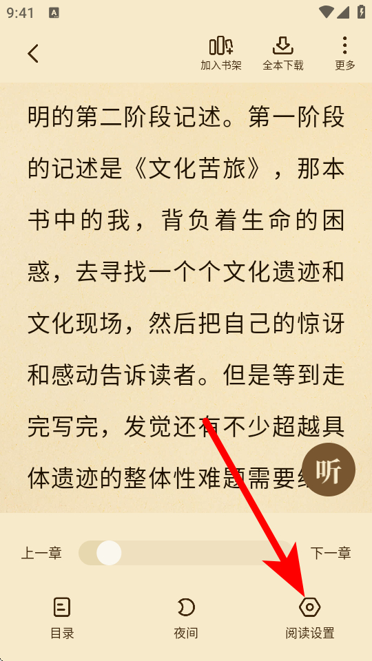 3、在小說閱讀界面,點擊閱讀設(shè)置選項,彈出設(shè)置列表。