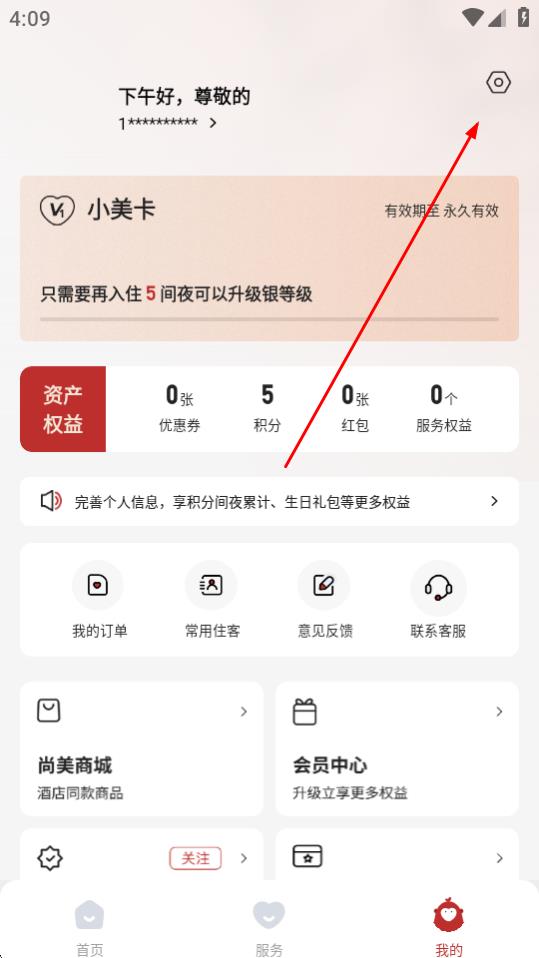 2、在我的頁面,點擊右上角的設(shè)置圖標(biāo)。