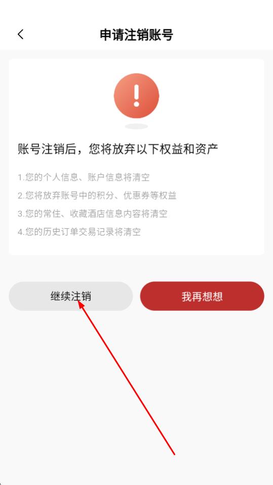 5、在申請注銷賬號頁面,仔細(xì)閱讀賬號注銷后放棄的權(quán)益和資產(chǎn)說明,點擊繼續(xù)注銷。