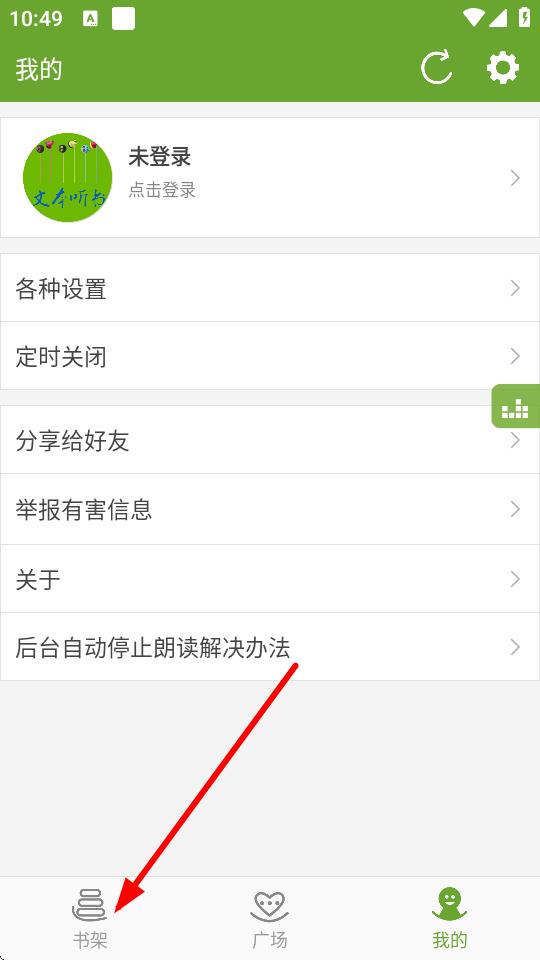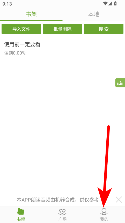 1、在txt文本聽書書架頁面,點擊右下角我的選項,進入個人界面。