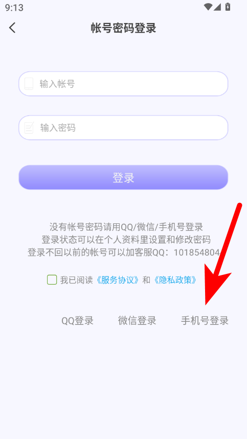 3、在登錄頁面,點擊手機號登錄選項,進入驗證碼登錄界面。