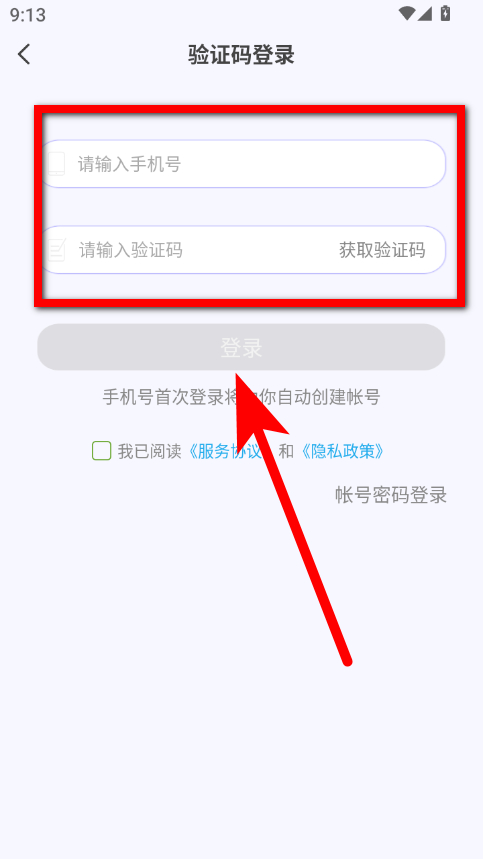 4、在驗證碼登錄界面,輸入手機號和驗證碼后點擊登錄,即可完成手機號登錄操作。
