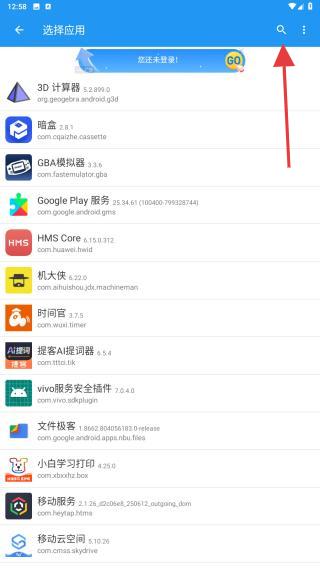 2、進(jìn)入到選擇應(yīng)用的頁(yè)面內(nèi),點(diǎn)擊右上角搜索的按鈕。