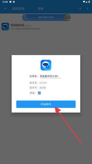 4、點(diǎn)擊后,會(huì)彈出應(yīng)用名、版本名、版本號(hào),勾選增強(qiáng)后再點(diǎn)擊開(kāi)始制作的按鈕。