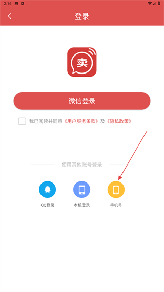 3、在登錄的頁面內(nèi),點(diǎn)擊手機(jī)號的登錄按鈕。
