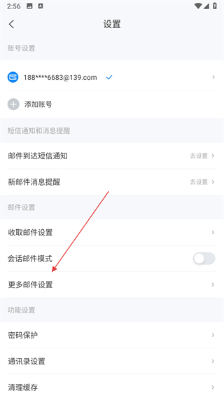 3、進入設(shè)置頁面后,點擊更多郵件設(shè)置選項。