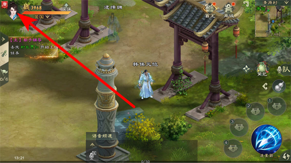 1、在綠色征途游戲界面,點擊左上角角色頭像,進入背包界面。