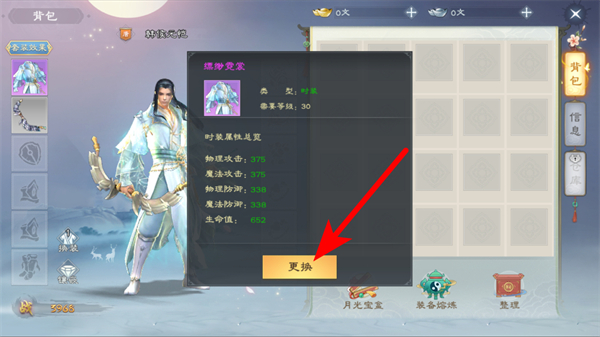 3、在時裝屬性窗口中,點擊更換按鈕,即可完成衣服更換操作。