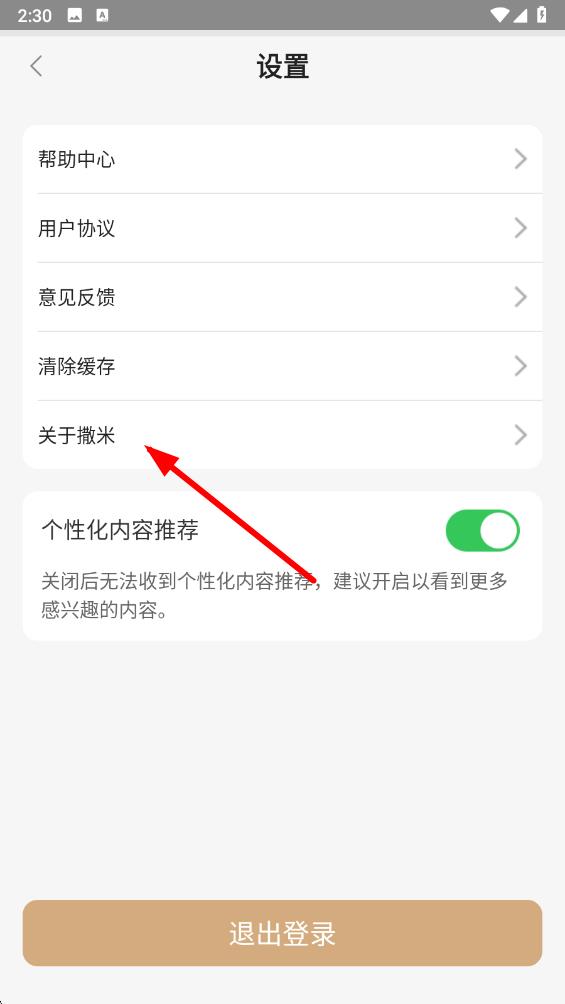 2、在設(shè)置頁面中,找到并點擊關(guān)于撒米選項,進入關(guān)于頁面。