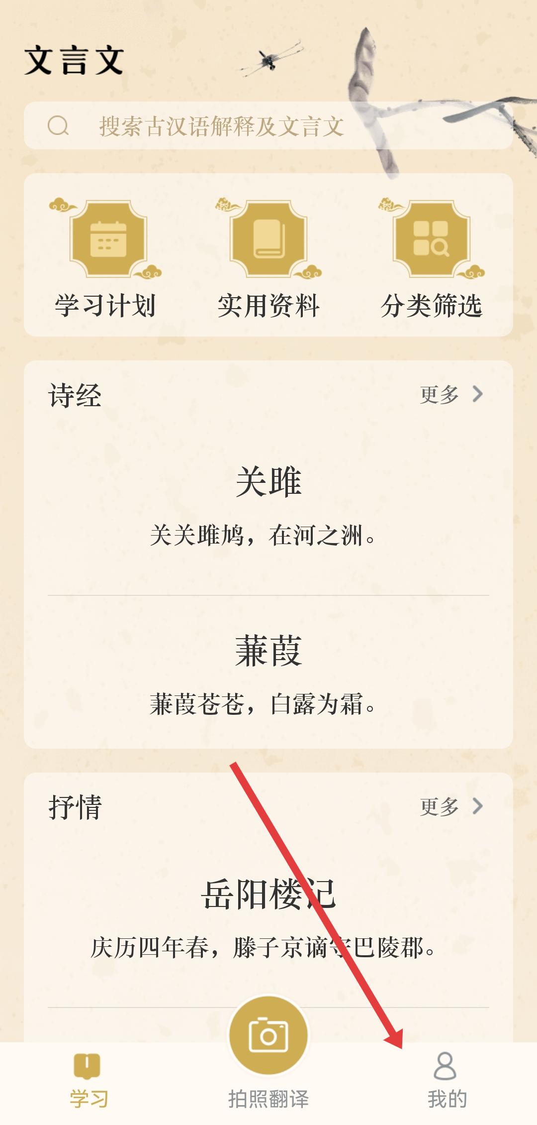 1、在文言文APP學習頁面,點擊右下角我的,進入個人的頁面。