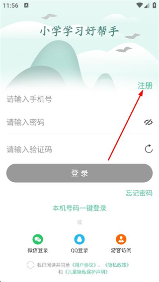 1、打開(kāi)狀元共享課堂APP,在登錄頁(yè)面點(diǎn)擊注冊(cè)選項(xiàng)。