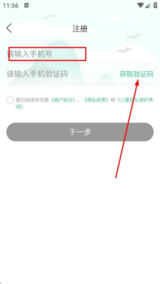 2、在注冊(cè)頁(yè)面,在輸入框內(nèi)輸入需要注冊(cè)的手機(jī)號(hào)。