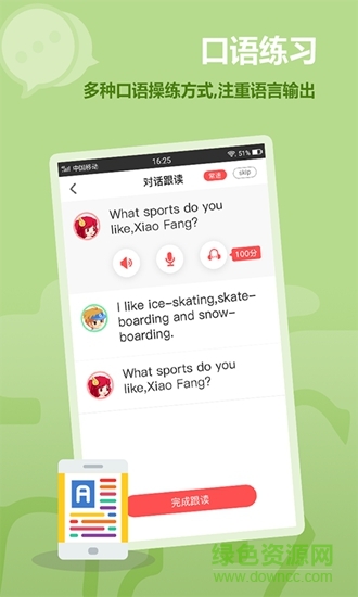 支持朗讀、跟讀、錄音、復(fù)讀、人機(jī)交互角色扮演,輕松完成英語口語作業(yè)