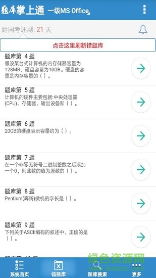 計算機一級掌上通app是一款專門用來進行全國計算機等級考試練習的手機軟件。用戶在上面不僅可以進行日常的常規(guī)練習,還可以進行錯題回顧等等。感興趣的朋友快來綠色資源網(wǎng)下載體驗吧!