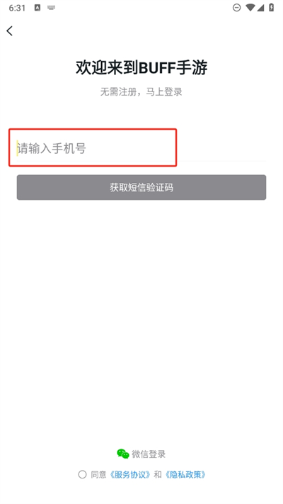 1、進入軟件可以看到其實無需注冊就可以登錄,我們輸入手機號進行短信驗證碼登錄;