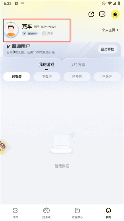 3、進入軟件后可以點擊自己的最上方的賬號欄目,進入自己的賬號管理功能中;