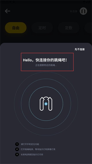 4、點擊后,頁面會呈現(xiàn)正在搜索跳繩設備的提示。