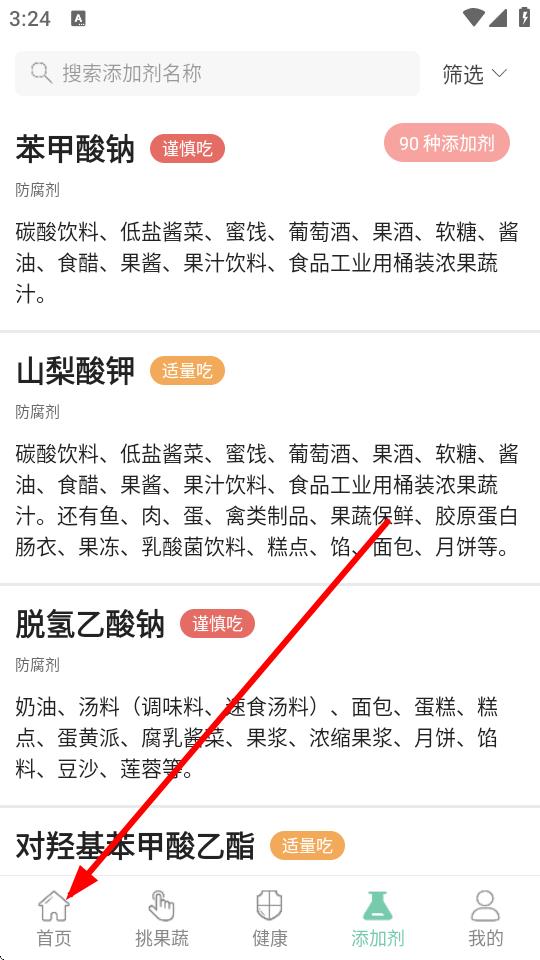 1、打開果蔬百科app,點擊底部導(dǎo)航欄中的首頁,回到首頁界面。