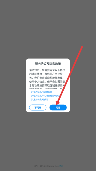 1、面對服務協(xié)議及隱私政策彈窗,點擊同意按鈕,確認協(xié)議后進入應用主界面,開啟使用流程。