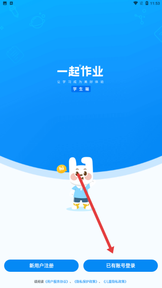 2、在一起作業(yè)—學生端界面,點擊已有賬號登錄按鈕,跳轉至登錄頁面,準備填寫賬號信息。