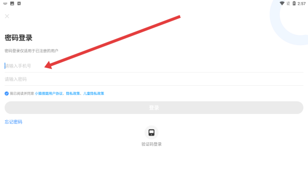 3、在密碼登錄界面,先在請輸入手機號輸入框內(nèi)填寫已注冊的手機號碼,為后續(xù)輸入密碼完成登錄操作做準備。