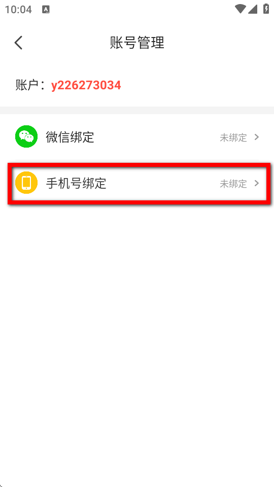 4、在賬號管理界面,點擊手機號綁定選項,即可進行手機號綁定操作。