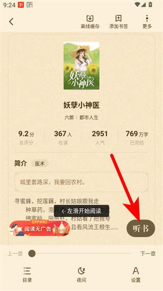 3、在小說詳情界面,點擊聽書按鈕,進入聽書播放頁面。