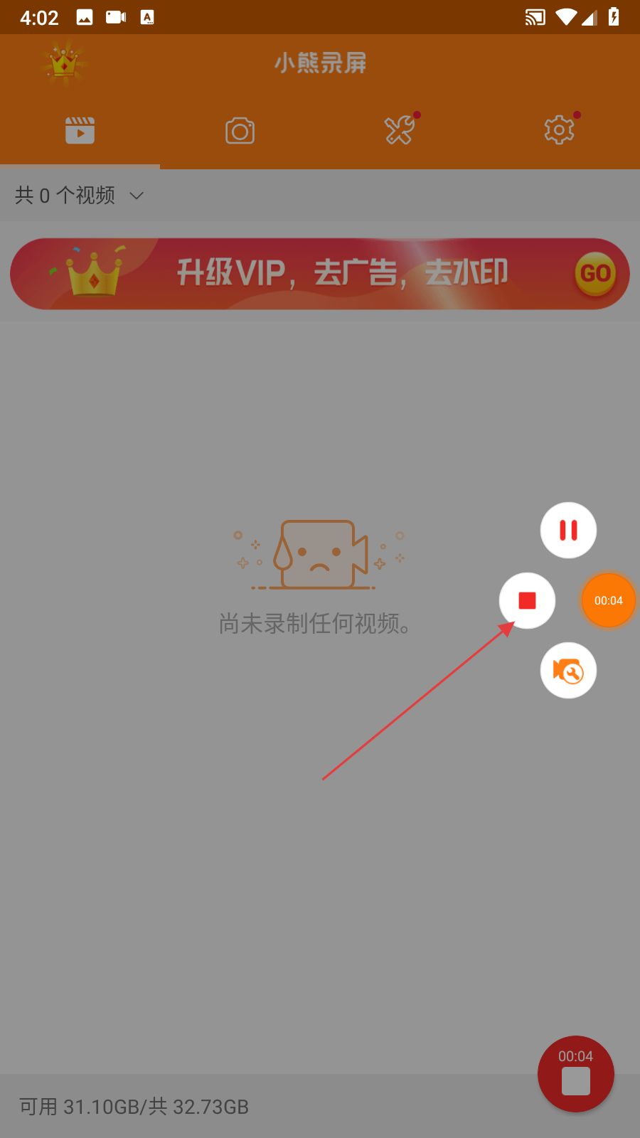 3、錄屏完成后,點擊錄屏懸浮窗上的紅色方塊按鈕,錄制的視頻會自動保存至設備存儲中。