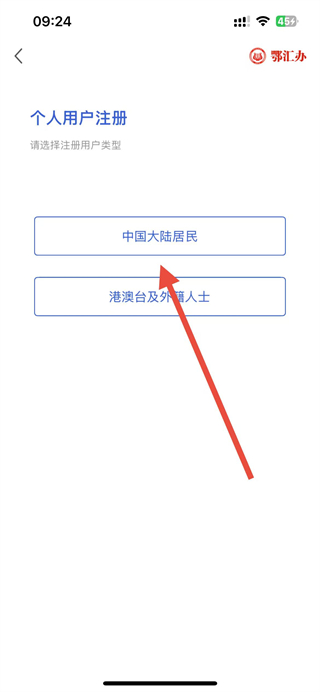 3、在個(gè)人用戶注冊(cè)頁(yè)面選擇中國(guó)大陸居民注冊(cè)用戶類型,進(jìn)入信息填寫頁(yè)面。