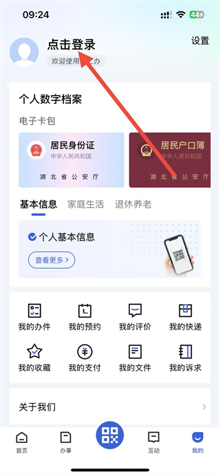 1、打開鄂匯辦app,在我的頁(yè)面點(diǎn)擊登錄區(qū)域,進(jìn)入登錄界面。
