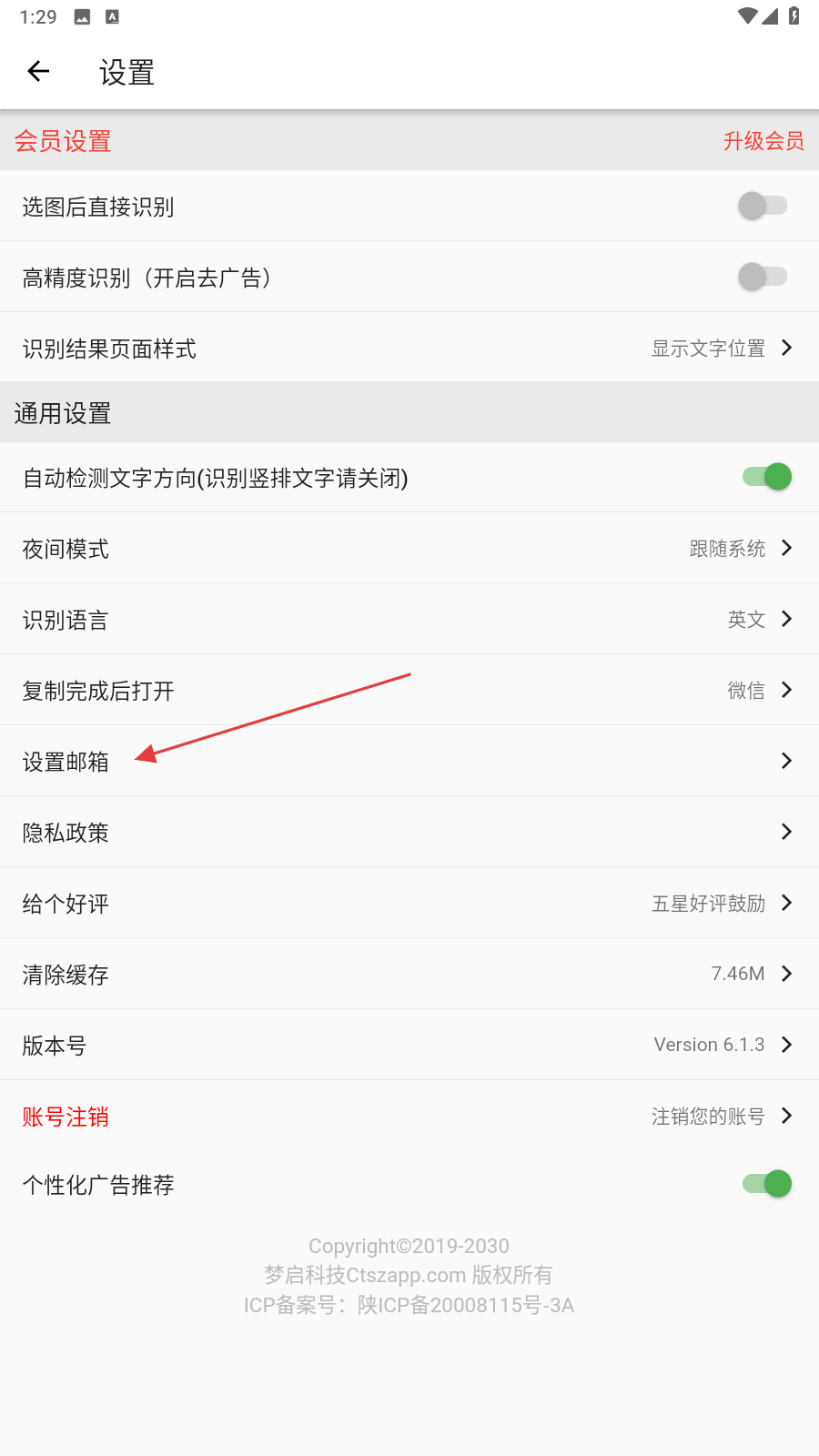 2、進(jìn)入到設(shè)置的界面內(nèi),點(diǎn)擊設(shè)置郵箱的按鈕。