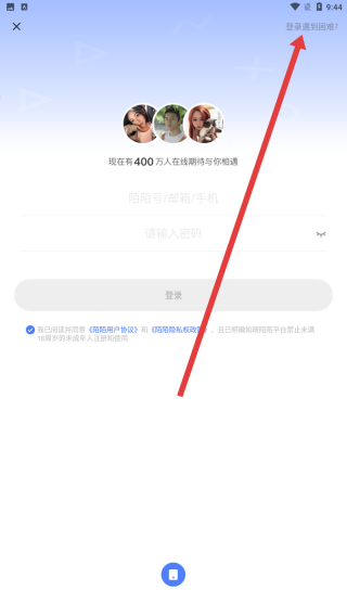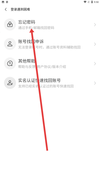 2、在登錄遇到困難頁面選擇忘記密碼選項,通過手機或郵箱方式找回密碼。