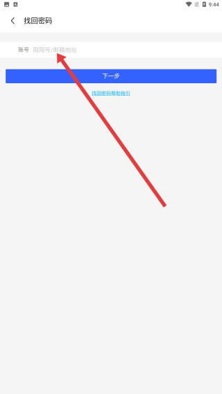 3、在找回密碼頁面的賬號輸入框填寫陌陌號或郵箱地址,點擊下一步繼續(xù)操作。