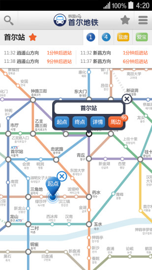 支持中韓對照版韓國地鐵路線圖,隨時隨地可查詢首爾、釜山、大邱、光州等地鐵路線指引和站內(nèi)信息,支持到站提醒功能,不用擔(dān)心坐過站,輕輕松松坐地鐵。全韓國地區(qū)的中文版地圖也同時開放,路更好找!