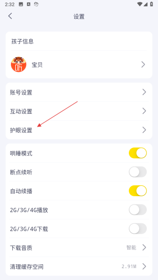 3、在設(shè)置界面中,點擊護眼設(shè)置選項,進入護眼設(shè)置頁面。