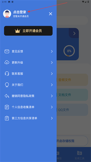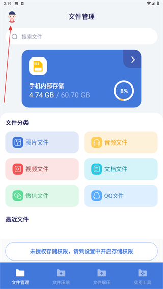 1、打開(kāi)萬(wàn)能文件格式轉(zhuǎn)換器APP,在首頁(yè)點(diǎn)擊左上角人像的圖標(biāo)。