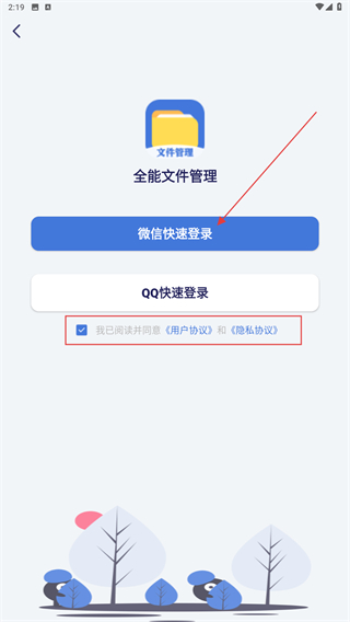 3、進(jìn)入登錄的頁(yè)面內(nèi),勾選用戶(hù)協(xié)議并點(diǎn)擊微信快捷登錄的按鈕即可。
