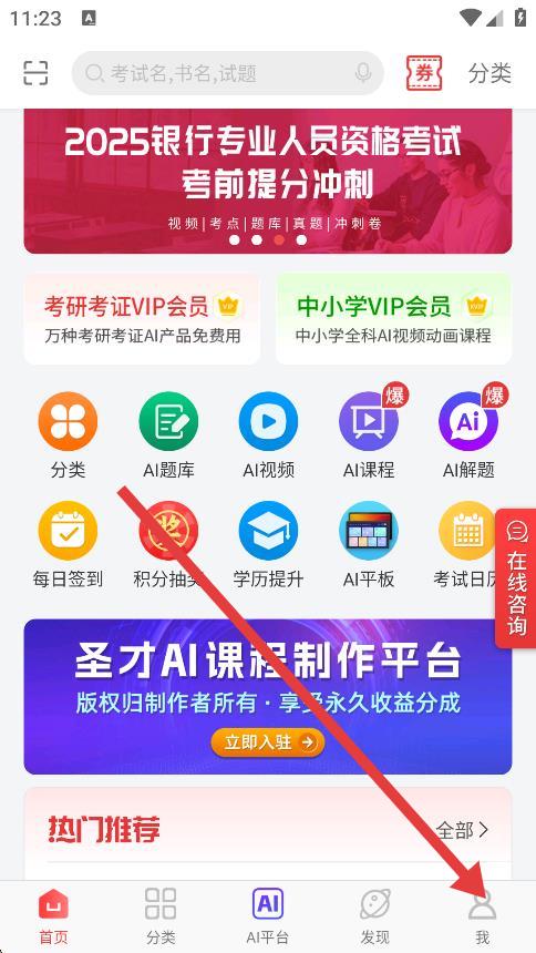 1、打開圣才電子書,點擊底部導(dǎo)航欄最右側(cè)的我選項。